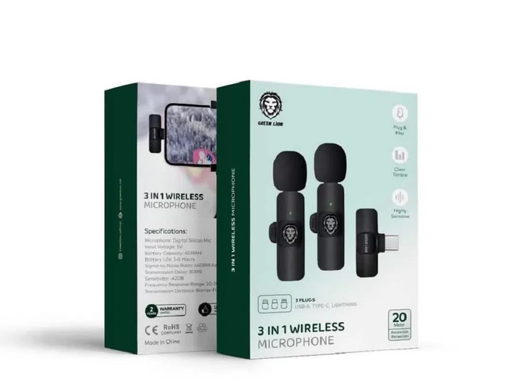 میکروفون بی سیم شیر سبز 3 در 1 با گیرنده 20 متری قابل دسترسی. زنگ شفاف، بسیار حساس، وصل و بازی.