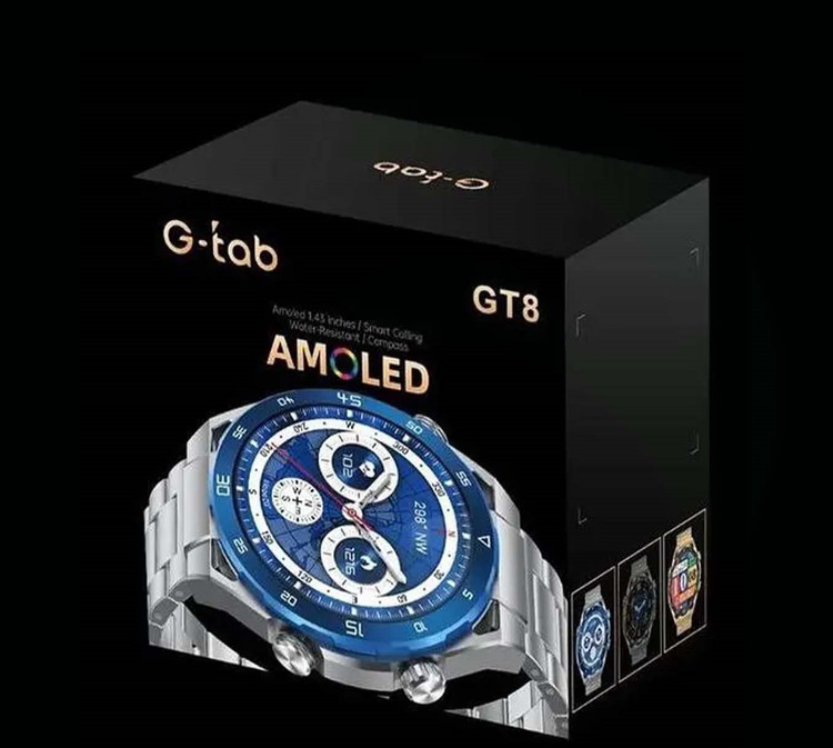 ساعت هوشمند جی تب GT8 محصولی خوش ساخت و با کیفیت است که دارای صفحه ای گرد می باشد؛ بنابراین از ظاهری کلاسیک بهره می برد و برای تمامی بانوان و آقایان قابل استفاده می باشد. ساعت همچنین از وزن سبکی برخوردار است و از ایجاد خستگی در استفاده طولانی مدت جلوگیری می کند. شرکت سازنده در ساختار بدنه از پلاستیک مرغوب به همراه شیشه و مواد فلزی استفاده کرده است، تا ساعت بتواند در برابر ضربه، خط و خش و دیگر آسیب های احتمالی مقاومت مطلوبی را نشان دهد. برای ساعت هوشمند جی تب GT7 یک صفحه نمایش لمسی با اندازه 1.43 amoled اینچ در نظر گرفته شده است که تصاویر مختلف را با وضوح کامل و کیفیت بالا به نمایش می گذارد؛ به علاوه از قابلیت همیشه روشن پشتیبانی می کند و تمامی اعلان ها را تنها با بالا آوردن مچ دست نمایش می دهد. G-tab GT8 از فناوری بلوتوث پشتیبانی می کند و به وسیله آن اتصالی بی سیم و پایدار را با انواع سیستم عامل های اندروید و iOS برقرار می کند. این مدل اسمارت واچ همچنین با استفاده از برنامه موزیک پلیر، امکان کنترل موسیقی های مورد علاقه را در اختیار شما قرار می دهد. برای ساعت هوشمند جی تب GT8 یک حافظه داخلی 256 مگابایتی در نظر گرفته شده است که با استفاده از آن آهنگ های مورد نظر را ذخیره کرده و با کیفیت مناسبی پخش می کند. یک میکروفون داخلی نیز برای ساعت طراحی شده است که به شما اجازه می دهد به تماس های خود پاسخ دهید و مکالمه ای لذت بخش را در هر زمان تجربه کنید. G-tab GT8 از 7 حالت ورزشی مختلف پشتیبانی می کند و پارامتر های مربوط به تناسب اندام مانند مقدار کالری سوزانده شده و تعداد گام های برداشته شده را به خوبی محاسبه می کند. علاوه بر آن دارای سنسورهای پیشرفته ای مانند شمارش ضربان قلب و سنجش اکسیژن خون می باشد که با استفاده از آن ها بر وضعیت سلامت بدنی نظارت می کند و در صورت بروز هرگونه مشکلی با ارسال پیام هایی به شما هشدار می دهد. از دیگر قابلیت های ساعت هوشمند می توان به نمایش وضعیت آب و هوا و بررسی کیفیت خواب اشاره کرد که در کنار دیگر مشخصات برجسته قرار گرفته است تا بهترین عملکرد را در نوع خود ارائه دهد. ساعت هوشمند جی تب GT8 دارای یک باتری داخلی لیتیومی می باشد که ظرفیتی به اندازه 300 میلی آمپر ساعت را عرضه می کند؛ در این صورت با استفاده از شارژر مگنتی به طور کامل شارژ می شود و تا یک هفته شما را در انجام امور روزانه و فعالیت های ورزشی همراهی می کند.