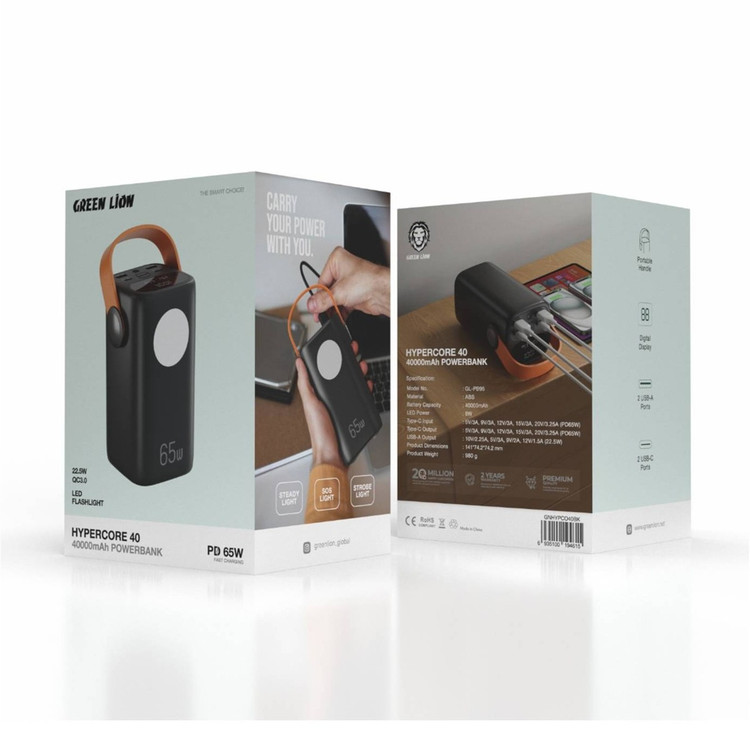 مهم ترین ویژگی پاوربانک گرین لاین Hyper Core 40 ظرفیت بالای 40000 میلی آمپر ساعت آن است. این ظرفیت بالا امکان تامین انرژی انواع دستگاه ها مانند گوشی موبایل، تبلت و حتی لپ تاپ را فراهم می کند و برای افرادی که در طول روز دسترسی دائمی به برق ندارند، یک انتخاب کاربردی و مطمئن به شمار می رود.