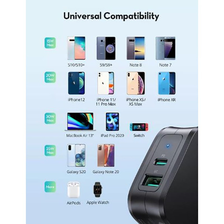 طراحی این شارژر به گونهای بوده تا امنیت بالایی در شارژ دستگاههای مختلف داشته و بتواند از آنها در برابر داغ شدن بیش از اندازه، اتصال کوتاه و یا وارد شدن ولتاژ بیش از اندازه محافظت کند. همچنین این شارژر ابعاد کوچکی داشته و دوشاخههای آن تاشو بوده تا بتوانید در حین سفر نیز آن را همراه خود داشته باشید.